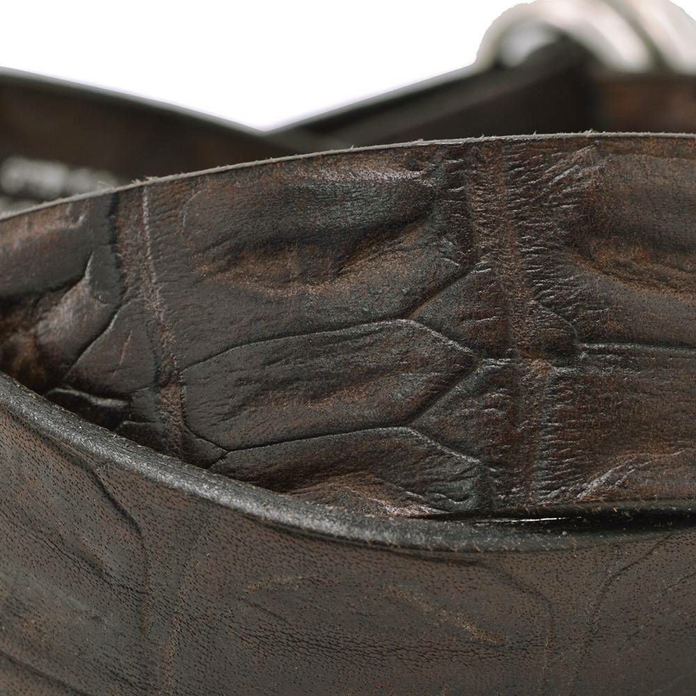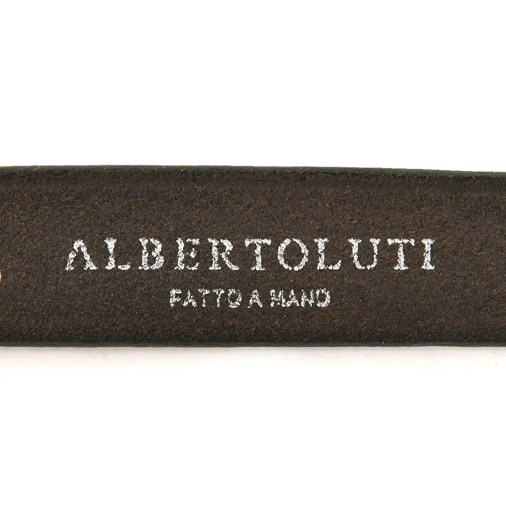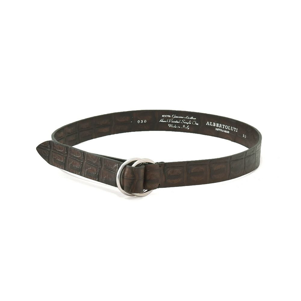 アルベルト ルティ ALBERTO LUTI ダブルリングベルト メンズ クロコ型押しレザー ダークブラウン 30mm幅 ブランド刻印 メッセージロゴ 国内正規品 でらでら 公式ブランド