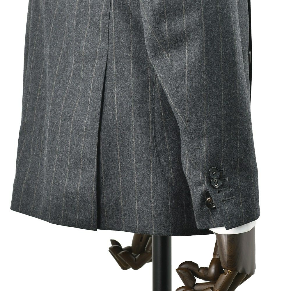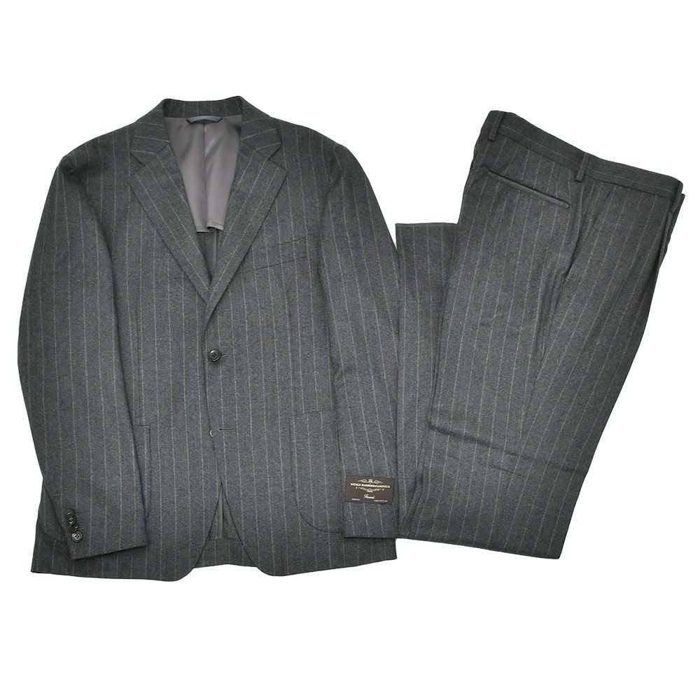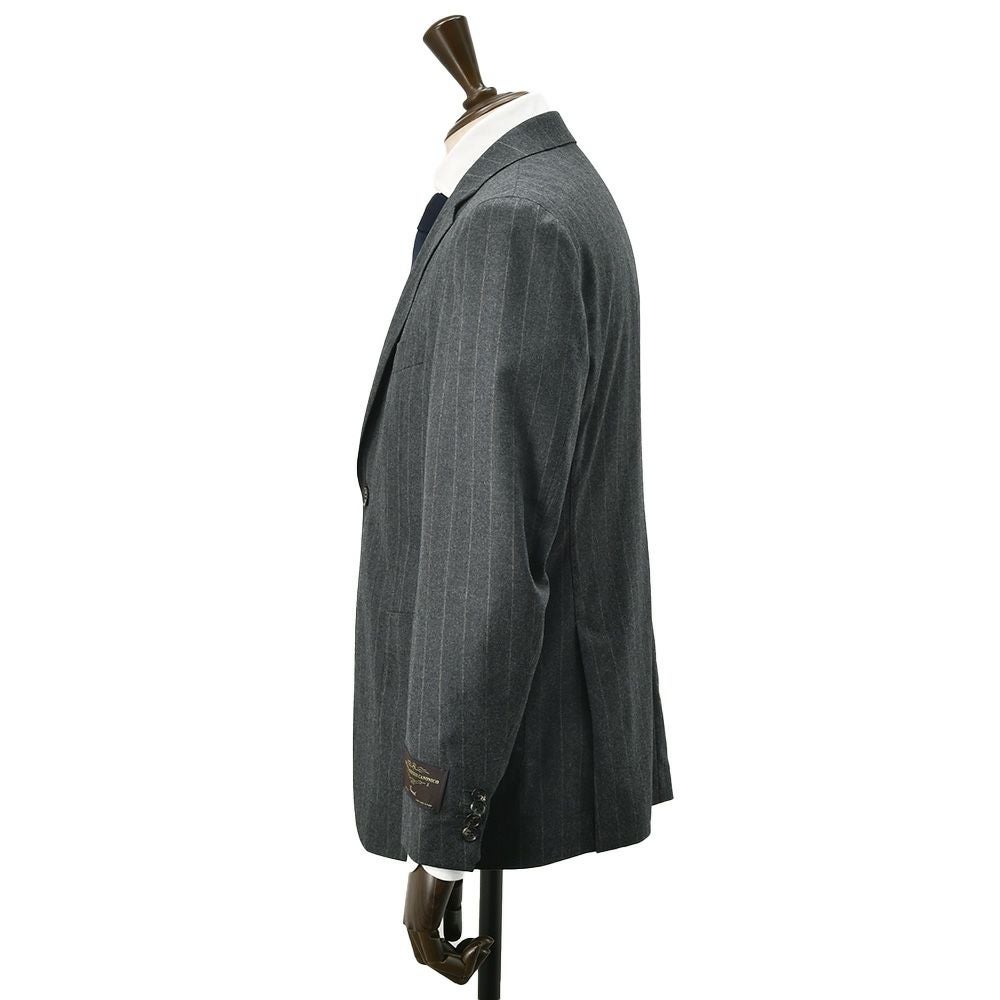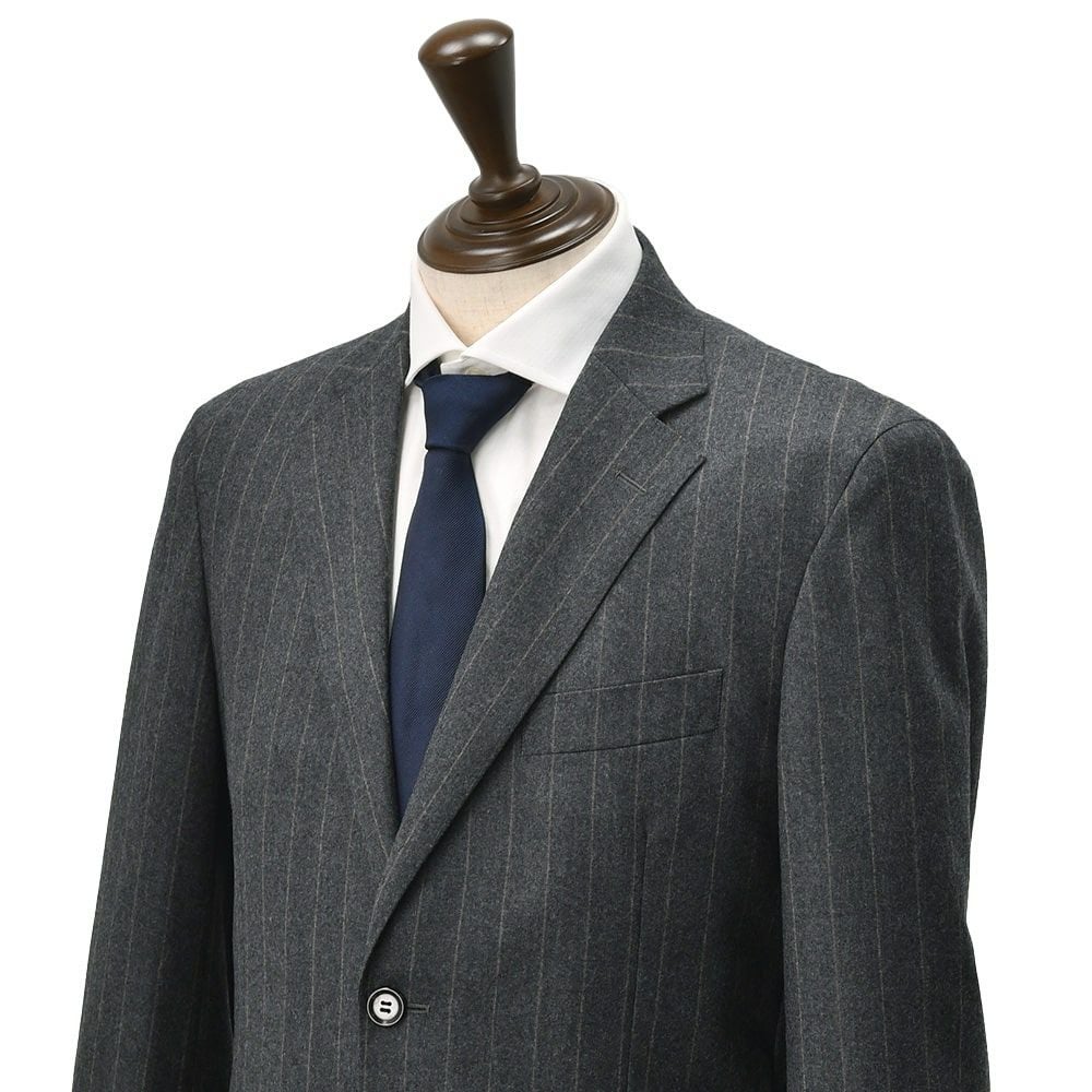 ヴィターレ バルベリス カノニコ VITALE BARBERIS CANONICO シングルスーツ メンズ 2つ釦フロント ウールフランネル Flannel チャコールグレー チョークストライプ柄 ノッチドラペル Superlativo スペルラティボ 日本製