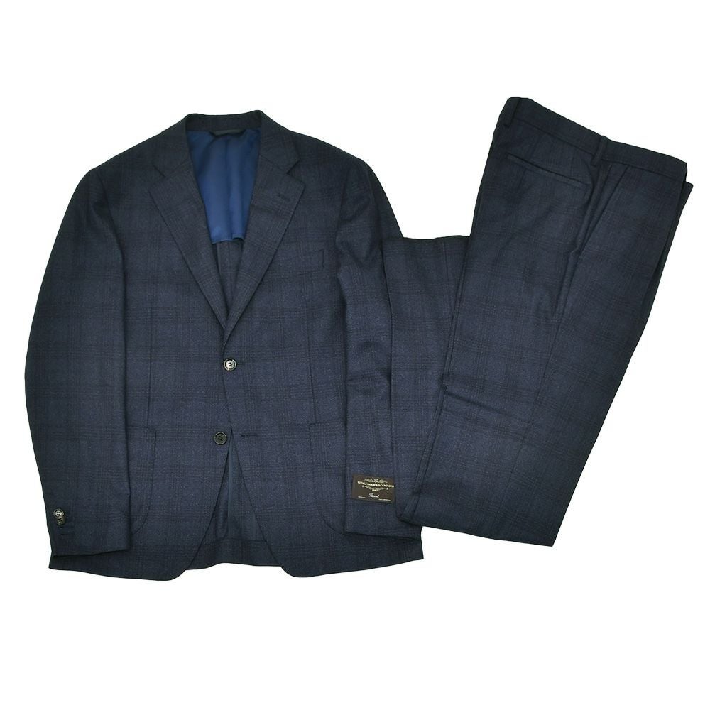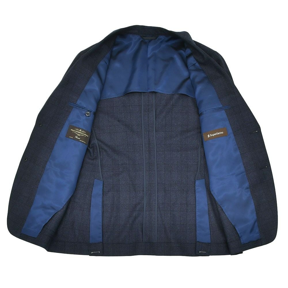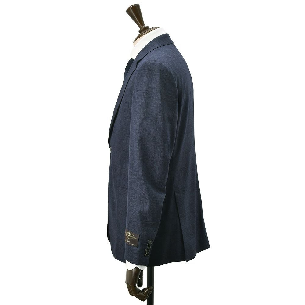 ヴィターレ バルベリス カノニコ VITALE BARBERIS CANONICO シングルスーツ メンズ 2つ釦フロント ウールフランネル Flannel ネイビー 紺 グレンチェック柄 ノッチドラペル Superlativo スペルラティボ 日本製