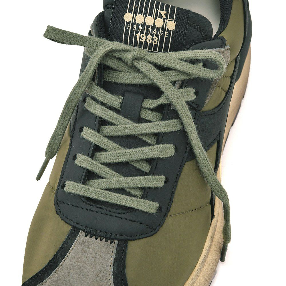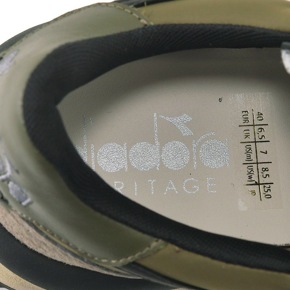 ディアドラ ヘリテージ Diadora Heritage レザースニーカー メンズ ローカットシューズ MERCURY ELITE カーキ×ブラック 厚底タイプ ストーンウォッシュ加工 レースアップ 国内正規品 で らでら公式 ブランド