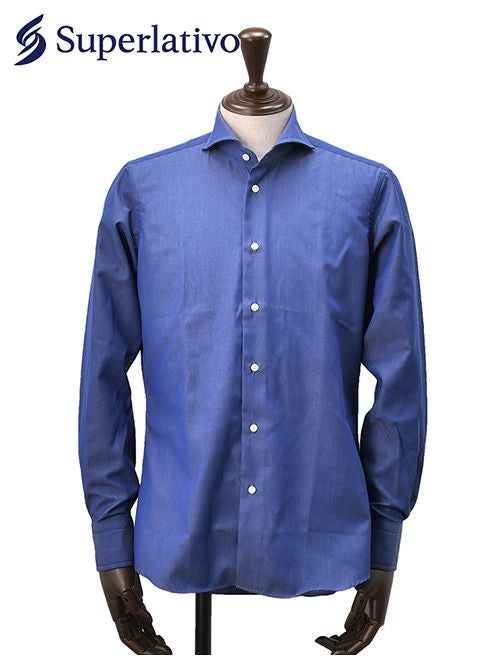 スペルラティボ Superlativo ドレスシャツ メンズ コットン100% シャンブレーシャツ インディゴブルー レギュラーフィット 巻き伏せ本縫い 日本製 国内正規品 でらでら 公式ブランド