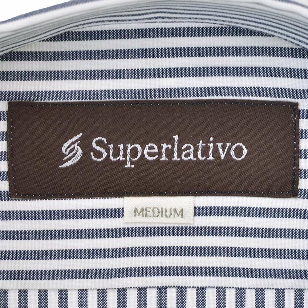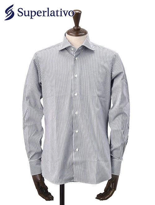 スペルラティボ Superlativo ドレスシャツ メンズ コットン100%生地 ブルー×ホワイト ストライプ柄 レギュラーフィット 巻き伏せ本縫い 日本製 国内正規品 でらでら 公式ブランド