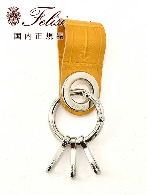 フェリージ felisi キーリング メンズ 9174/1/SA エンボスレザー キーホルダー イエロー キーフックタイプ シルバーパーツ ユニセックス ギフト プレゼント イタリア製 国内正規品 でらでら 公式ブランド