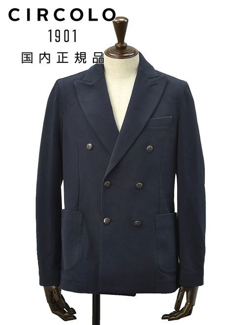 チルコロ CIRCOLO 1901 カジュアルジャケット メンズ 6Bダブルブレスト コットンジャージ D.PETTO FELPA ネイビー 紺 裏起毛 製品染め スリムシルエット 国内正規品 でらでら 公式ブランド