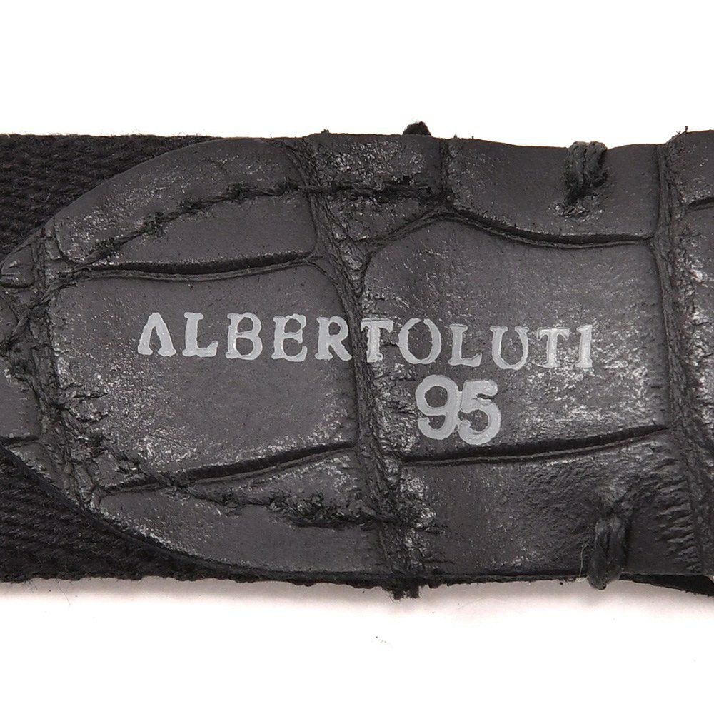アルベルト ルティ ALBERTO LUTI レザーメッシュベルト メンズ プンターレ カーフスエード 裏面別生地 ブラック 黒 25mm幅 ブランド刻印 シルバー真鍮バックル 国内正規品 でらでら 公式ブランド