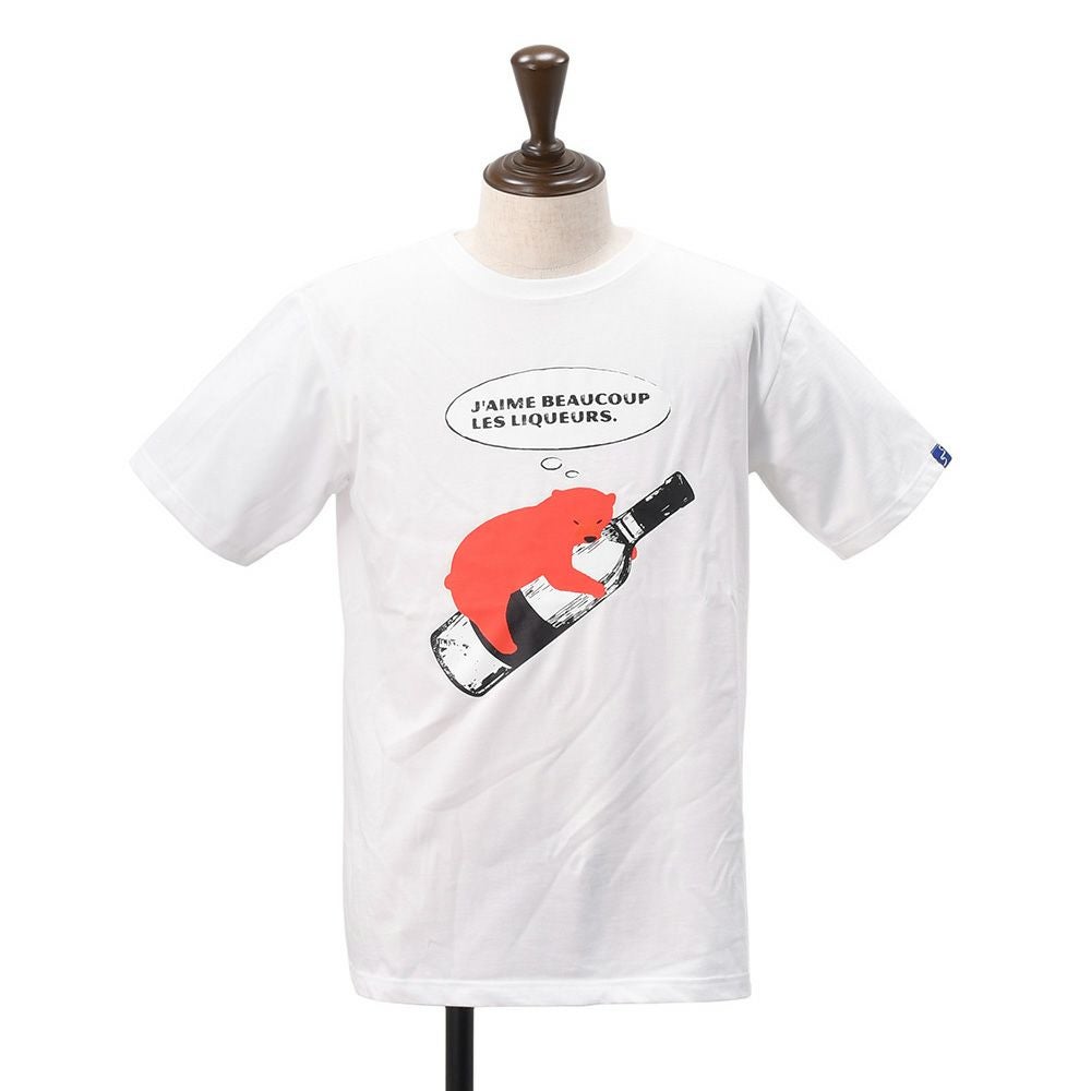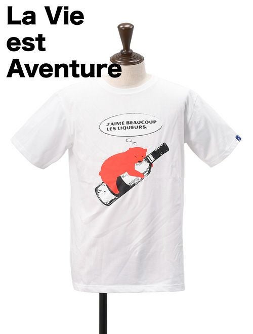 ラヴィエアバンチュール フランス メンズ 半袖Tシャツ La vie est aventure ラ ヴィ エ アバンチュール メンズ プリント Tシャツ ホワイト ユニセックス 半袖 リキュール&ベア ワインボトルを抱えたクマ カットソー 国内正規品