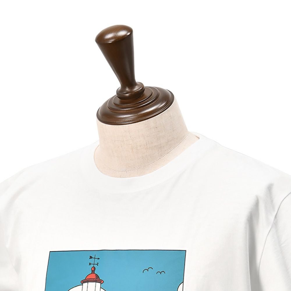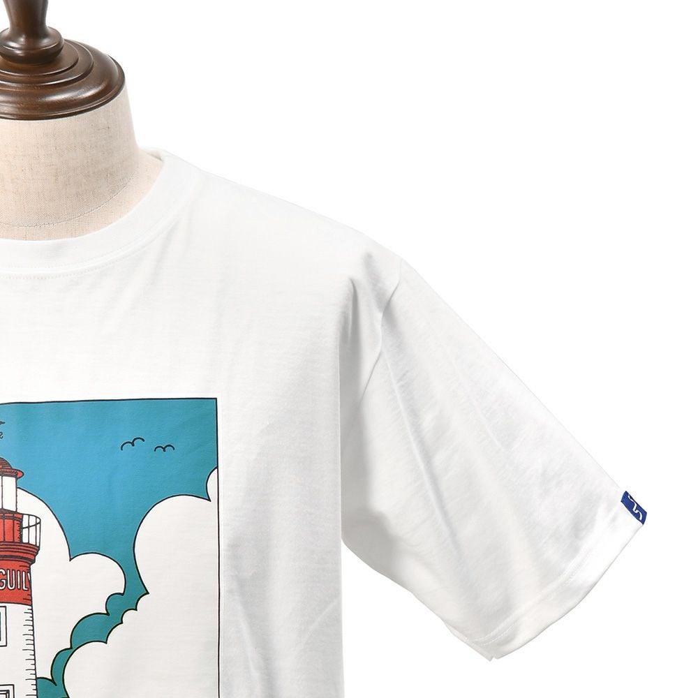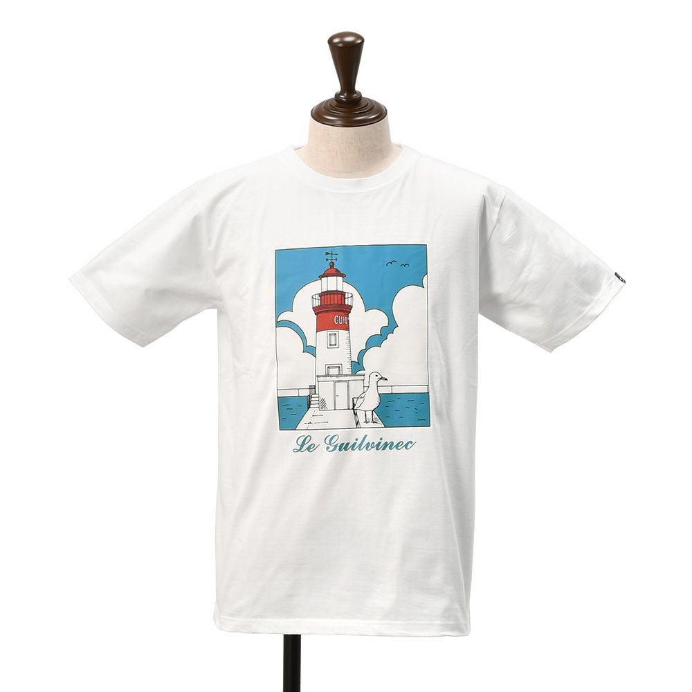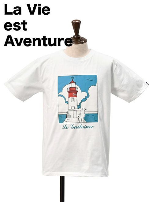 ラ ヴィ エ アバンチュール メンズ 半袖Tシャツ GUILVINEC La vie est aventure ラ ヴィ エ アバンチュール 半袖Tシャツ メンズ クルーネックカットソー 灯台とカモメ プリント ホワイト GUILVINEC ユニセックス 国内正規品 でらでら公式 ブランド