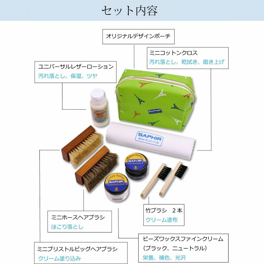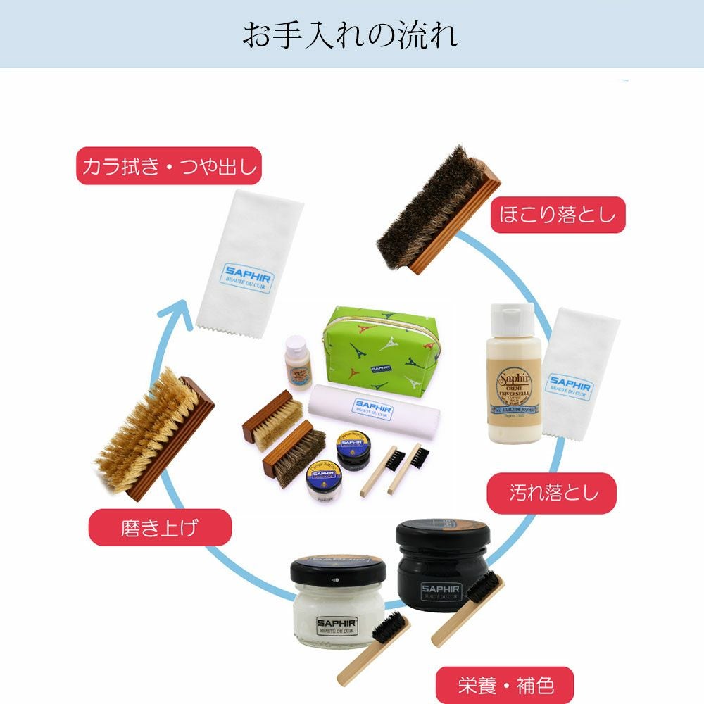 SAPHIR  サフィール スクエアポーチ入り 7点セット シューケア ミニJARセットダブル ポーチセット ユニバーサルレザーローション ミニホースヘアブラシ でらでら 公式ブランド 国内正規品 Octet 公式ブランド
