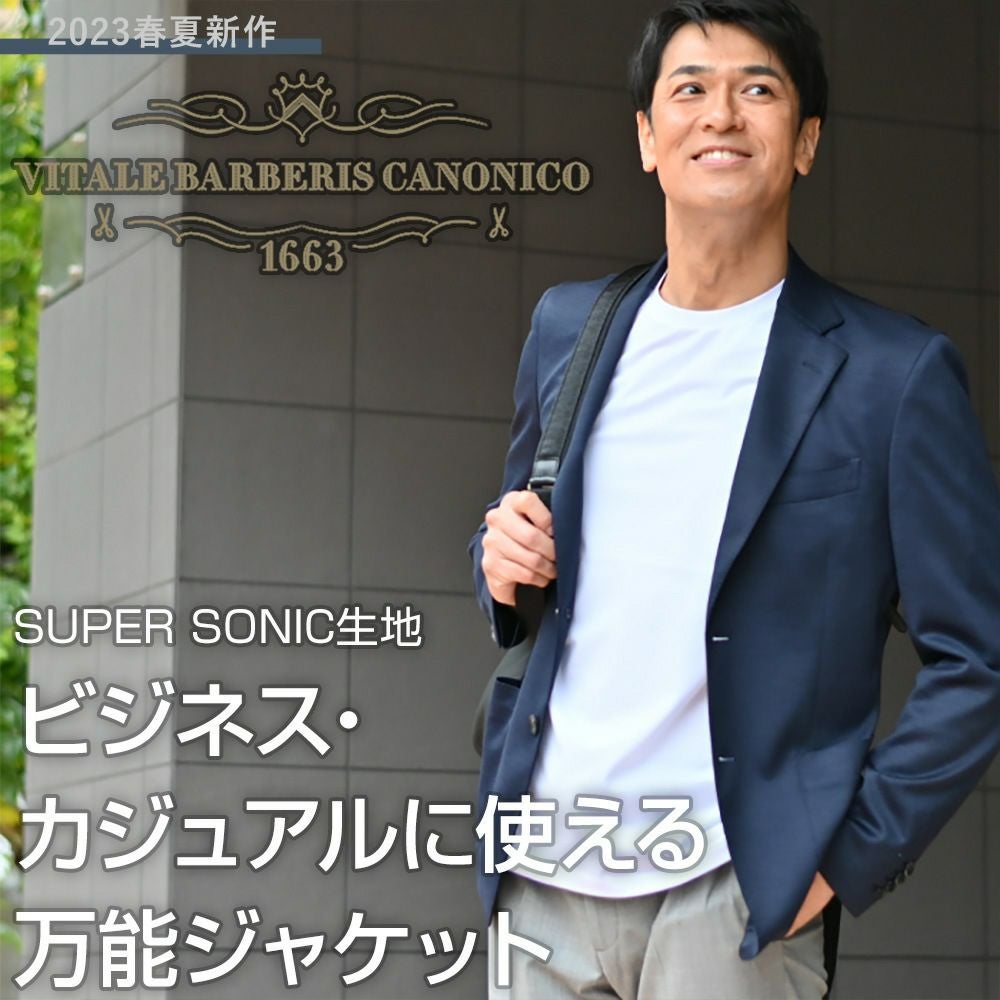 ヴィターレ バルベリス カノニコ VITALE BARBERIS CANONICO カジュアルジャケット メンズ 2つ釦シングル ウールシルク ネイビー SUPER SONIC Superlativo スペルラティボ 日本製 ブランド