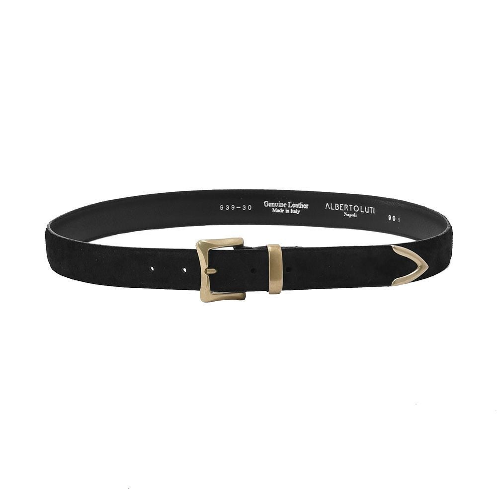 アルベルト ルティ ALBERTO LUTI レザーベルト メンズ プンターレ仕様 カーフスエード ブラック 黒 ヴィンテージバックル 30mm幅 ブランド刻印 国内正規品 でらでら 公式ブランド