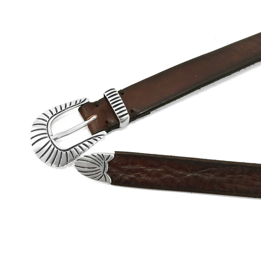 アルベルト ルティ ALBERTO LUTI レザーベルト メンズ プンターレ仕様 牛革 ダークブラウン ウエスタンバックル 25mm幅 ブランド刻印 メッセージロゴ 国内正規品 でらでら 公式ブランド
