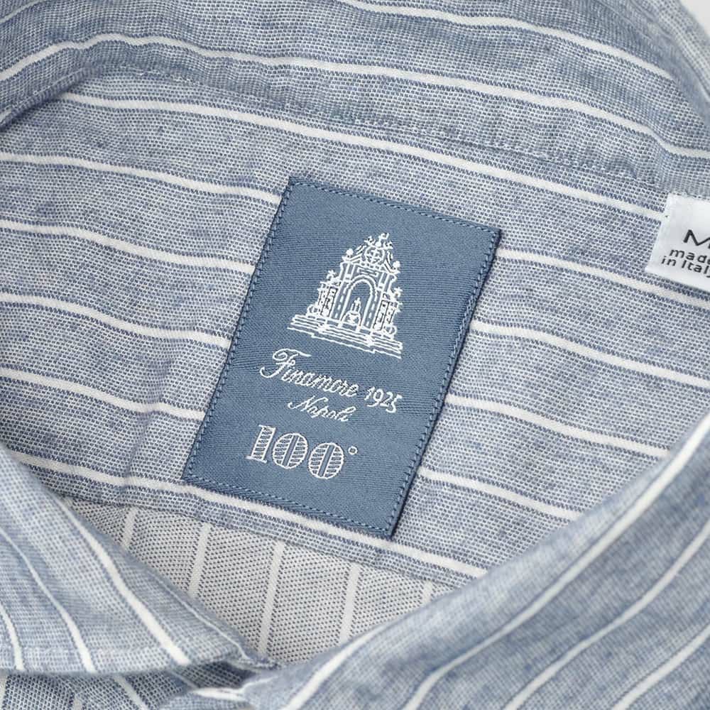 フィナモレ Finamore 長袖カジュアルシャツ メンズ SIMONE シモーネ コットン生地 ブルーグレー ストライプ ブランドロゴ入り貝釦 製品洗い カッタウェイ襟 国内正規品 でらでら 公式ブランド