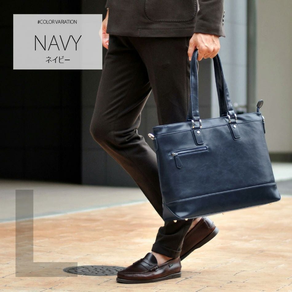 Lサイズ ビジネスバッグ バッグ メンズ ビジネストート トートバッグ ビジネスバック 鞄 仕事用 通勤用 通勤鞄 大容量 出張 男性用 レザー 合成皮革 PUレザー B4 ブラック ブラウン ネイビー 黒 茶 紺