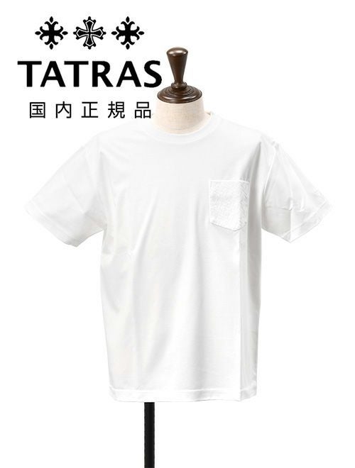 タトラス TATRAS 半袖Tシャツ メンズ クルーネックカットソー ピライノ PIRAINO ホワイト 白 コットンジャージー モノグラムパターン胸ポケット 左袖ブランドアイコン リラックスシルエット 国内正規品 でらでら公式 ブランド