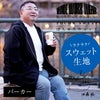 詳しい製法をお伝えしたいわけではなく、今回セレクトしたポンチ生地は、滑らかな肌ざわりと艶感。そして伸縮性にすぐれ、しわになりにくく型崩れしにくい素材であるという事。つまりぽっちゃり体型に最適なスウェットをセレクトしました。