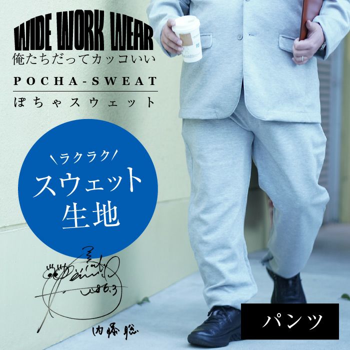 スウェット素材の良さを充分に活かしたデザインを考案した特別な1着となります。ジャケットにも関わらず堅苦しくなく気楽に着用出来ること。パーカーも首元や脇の切り替えパンツもウエストから裾にかけてのスマートなライン。ぽっちゃり体型のアイテム×スウェットでの着心地の良さを追求してこちらの製品に仕上がりました。