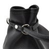 柔らかな質感でキュッと絞られた開口部は、Dカンを通るストラップのスナップボタンでしっかりと固定する事ができます。