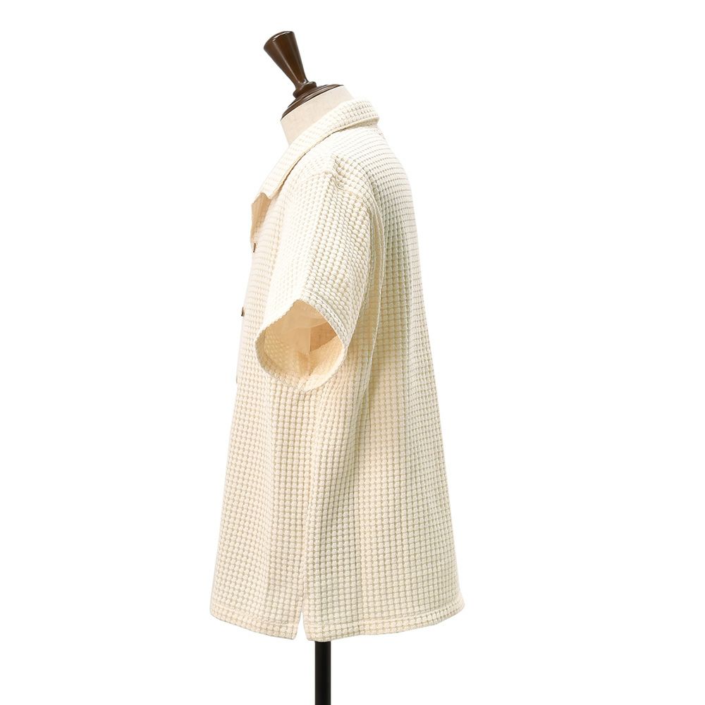 ビッグワッフルの凹凸感は、肌に触れる面積を抑える事でペタリと纏わり付かず、通気性にも優れているので、蒸れる事なく快適な着用感を作り出してくれます。目に映るアイコニックな風合いが自慢の半袖シャツを、素肌でご体感くださいませ。