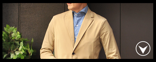フォーマルなスーツではないので、ノーネクタイでもキレイに決まる所が魅力的なのです。