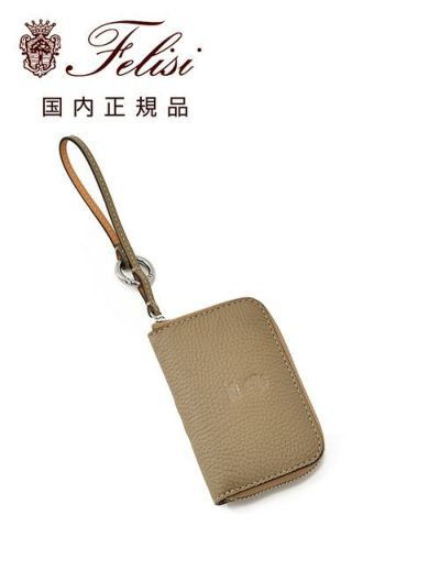フェリージ felisi チェーン付きキーケース 男女兼用 シュリンクレザー シボ 1174/LD ソフトキップレザー グレージュ カードポケット イタリア製 贈り物 国内正規品 でらでら 公式ブランドのレビューを書く