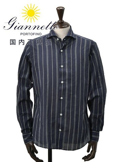 ジャンネット GIANNETTO 長袖カジュアルシャツ メンズ ストライプ柄 コットン100% ホリゾンタル襟 スリムフィット ネイビー 紺 イタリア製 国内正規品 でらでら公式 ブランドのレビューを書く