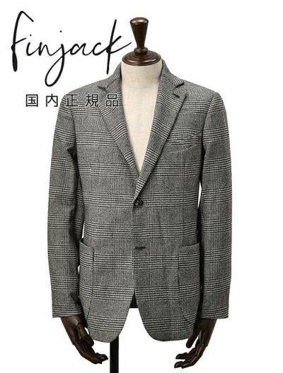 フィンジャック Finjack カジュアルジャケット メンズ シングル2Bフロント SGCSモデル グレー グレンチェック柄 アンフィニッシュ袖 ウール 国内正規品 でらでら 公式ブランドのレビューを書く