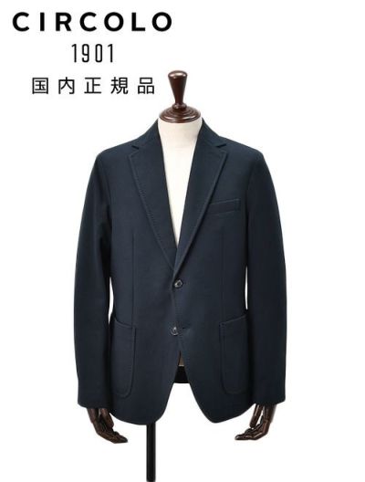 チルコロ CIRCOLO 1901 シングルジャケット メンズ コットンジャージ カシミヤタッチ ネイビー 紺 裏起毛 秋冬新作 セットアップ対応 スリムシルエット 国内正規品 でらでら 公式ブランド