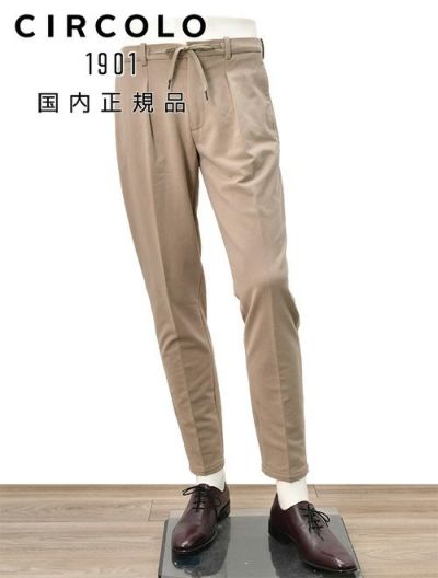 チルコロ CIRCOLO 1901 イージースラックス メンズ コットンジャージ カシミヤタッチ ブラウンベージュ 裏起毛 秋冬新作 セットアップ対応 ワンプリーツ 国内正規品 でらでら 公式ブランド