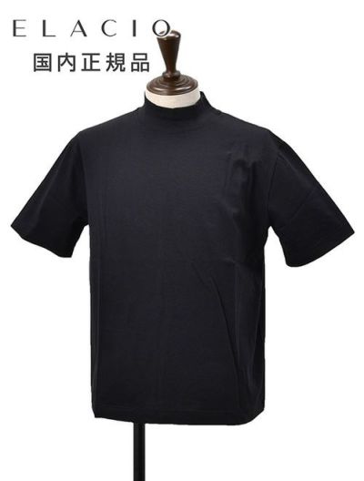 エラシオ ELACIO モックネック半袖Tシャツ メンズ ショートスリーブカットソー コットンスムースジャージー ブラック 黒 無地デザイン レギュラーシルエット 国内正規品 でらでら 公式ブランドのレビューを書く