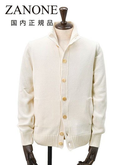 ザノーネ ZANONE ニットカーディガン メンズ CHIOTO キョート スタンドネック コットン100% アイボリー 白 5ゲージ ニットブルゾン スリムフィット 812485 国内正規品 でらでら公式 ブランドのレビューを書く