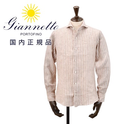 ジャンネット GIANNETTO 長袖カジュアルシャツ メンズ ストライプ柄シャツ リネン生地 ヴィンチフィット VINCI FIT ブラウン×ホワイト ホリゾンタルカラー イタリア製 国内正規品 オクテット名古屋のレビューを書く