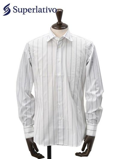 スペルラティボ Superlativo ドレスシャツ メンズ セミワイドカラー ギザコットン ブロード生地 ホワイト 白 ストライプ柄 レギュラーフィット 袖・脇本縫い仕様 当店オリジナルシャツ 日本製のレビューを書く