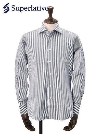 スペルラティボ Superlativo ドレスシャツ メンズ コットン100%生地 ブルー×ホワイト ストライプ柄 レギュラーフィット 巻き伏せ本縫い 日本製 国内正規品 でらでら 公式ブランドのレビューを書く