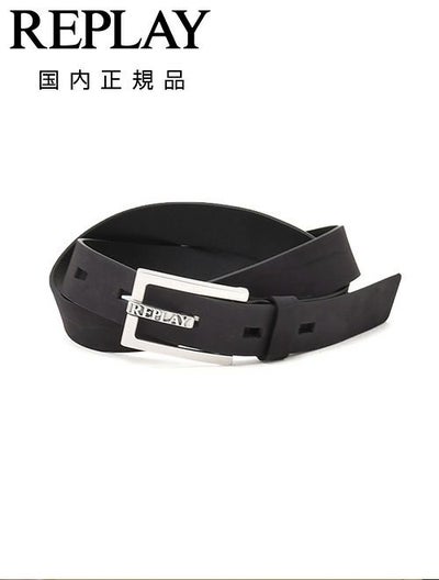 リプレイ REPLAY レザーベルト メンズ スクエアバックルベルト ヌバックレザー ブラック 黒 ロゴデザインプロング 3cm幅 プレゼント ギフト 長さ調節不可 国内正規品 オクテット名古屋のレビューを書く