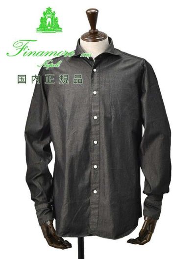 フィナモレ Finamore 長袖シャツ メンズ SIMONE シモーネ コットンシャンブレー生地 ブラックウォッシュ 黒 100周年タグ ブランドロゴ入り貝釦 カッタウェイ襟 TONDO型 国内正規品 オクテット名古屋のレビューを書く