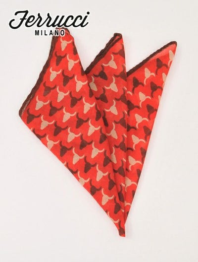 FERRUCCI フェルッチ ミラノ メンズ フォーマル ポケットチーフ 40-TESCHIO テスキオ・スカル レッドブラウン モダール生地 イタリアブランドのレビューを書く