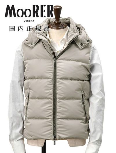 ムーレー MooRER ダウンベスト メンズ フェイヤー FIRE-KM 強撥水ポリエステル SHAPE MEMORY PES グレージュ 襟裏ウールニット フード着脱可能 アクアライン 国内正規品 でらでら 公式ブランドのレビューを書く