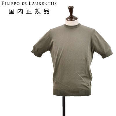 フィリッポ デ ローレンティス FILIPPO DE LAURENTIIS サマーニット メンズ 半袖クルーネックニット クレープコットン カーキブラウン 14ゲージ 袖・裾リブ仕様 スリムフィット 国内正規品 オクテット名古屋のレビューを書く