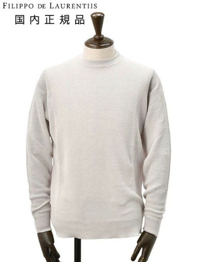 フィリッポ デ ローレンティス FILIPPO DE LAURENTIIS 長袖サマーニット メンズ クルーネックニット リネンコットン 14ゲージ ライトグレー リブ編み コンパクトフィット 国内正規品 でらでら 公式ブランドのレビューを書く
