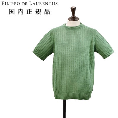 フィリッポ デ ローレンティス FILIPPO DE LAURENTIIS クルーネックニット メンズ すかし編みニット コットン モスグリーン 7ゲージ 編み柄デザイン 国内正規品 でらでら 公式ブランド オクテット名古屋のレビューを書く