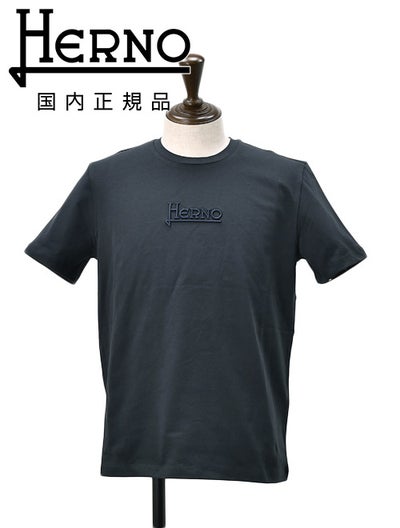 ヘルノ HERNO 半袖Tシャツ メンズ クルーネックカットソー 同色ロゴ刺繍 COMPACT JERSEY ネイビー 紺 レギュラーフィット ショートスリーブ シルバープレート 国内正規品 でらでら 公式ブランドのレビューを書く
