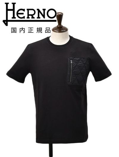ヘルノ HERNO 半袖Tシャツ メンズ クルーネックカットソー コットンジャージー COMPACT JERSEY ブラック 黒 キルティング胸ポケット 切り替えデザイン 国内正規品 オクテット名古屋