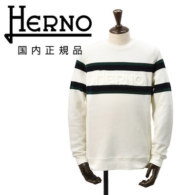 ヘルノ HERNO 長袖ニット メンズ ワッフル調ニット コットンピケジャージ オフホワイト エンボスロゴ クルーネック 胸元・袖配色ライン 鹿の子 国内正規品 でらでら 公式ブランド オクテット名古屋のレビューを書く