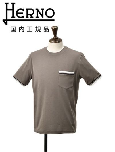 ヘルノリゾート HERNO RESORT 半袖カットソー メンズ Tシャツ JG00047UR コットン100% ブラウン グレージュ 灰 クルーネック 胸ポケット 袖リブ仕様 国内正規品 でらでら 公式ブランドのレビューを書く