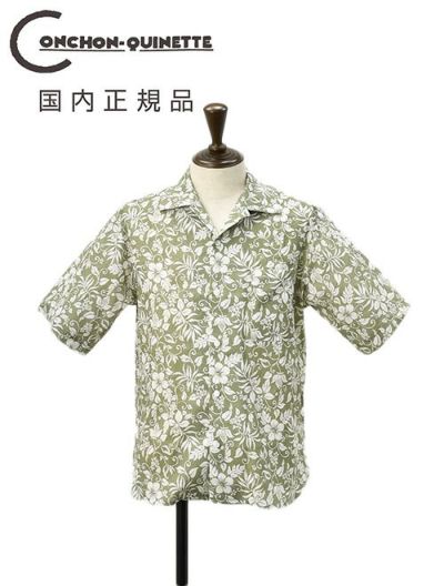 コンション キネット CONCHON QUINETTE 半袖オープンカラーシャツ メンズ KAMEHAMEHA? サマーシャツ リーフ柄 オリーブ カーキ リネンクロス 国内正規品 でらでら 公式ブランドのレビューを書く