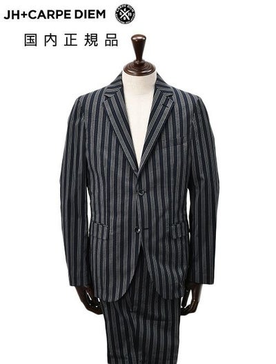 ジェイエイチ プラス カルペ ディエム JH+CARPE DIEM セットアップ メンズ シングルジャケット&テーパードパンツ 別注モデル シアサッカー生地 ネイビー 紺 ストライプ柄 ストレッチ生地 軽量 でらでら 公式ブランドのレビューを書く
