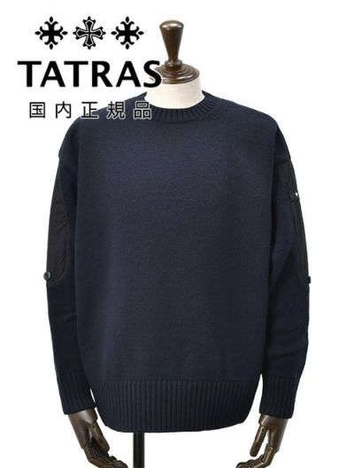 タトラス TATRAS クルーネックニット メンズ ミドルゲージセーター ラスカリ LASCARI ネイビー 紺 ウール&ワッシャーナイロン 異素材パターン リラックスシルエット 国内正規品 でらでら公式 ブランドのレビューを書く