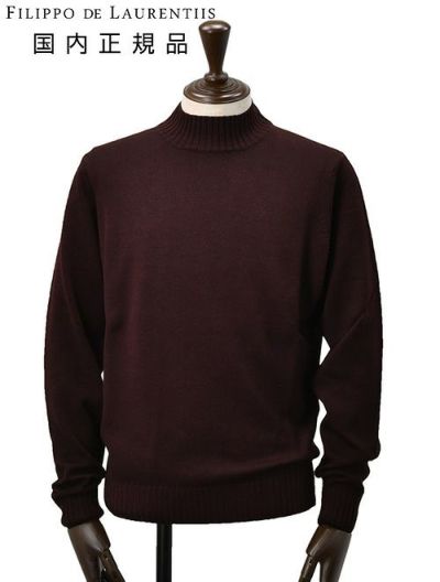 フィリッポ デ ローレンティス FILIPPO DE LAURENTIIS モックネックニット メンズ ミドルゲージ 製品染め メリノウール ボルドー ワイン 長袖 リブ仕様 スリムフィット 国内正規品 でらでら 公式ブランドのレビューを書く