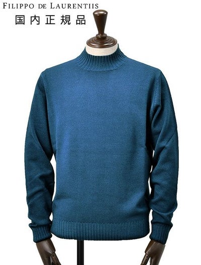 フィリッポ デ ローレンティス FILIPPO DE LAURENTIIS モックネックニット メンズ ミドルゲージ 製品染め メリノウール ブルー 青 長袖 リブ仕様 スリムフィット 国内正規品 でらでら 公式ブランドのレビューを書く