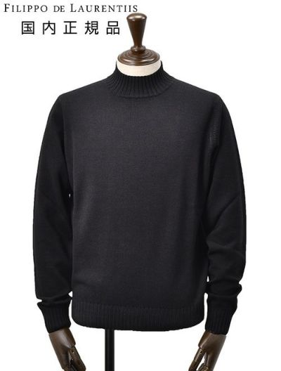 フィリッポ デ ローレンティス FILIPPO DE LAURENTIIS モックネックニット メンズ ミドルゲージ 製品染め メリノウール ブラック 黒 長袖 リブ仕様 スリムフィット 国内正規品 でらでら 公式ブランドのレビューを書く